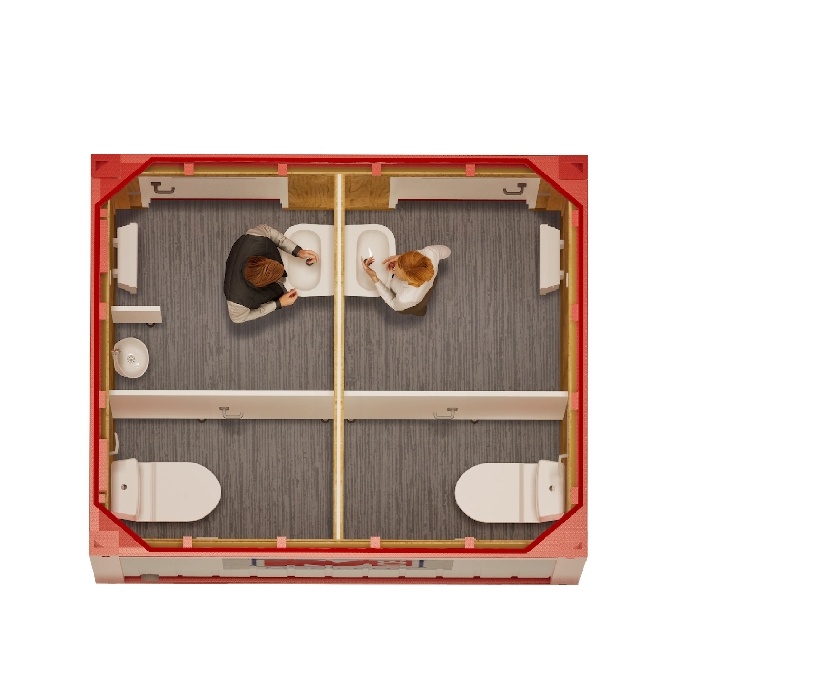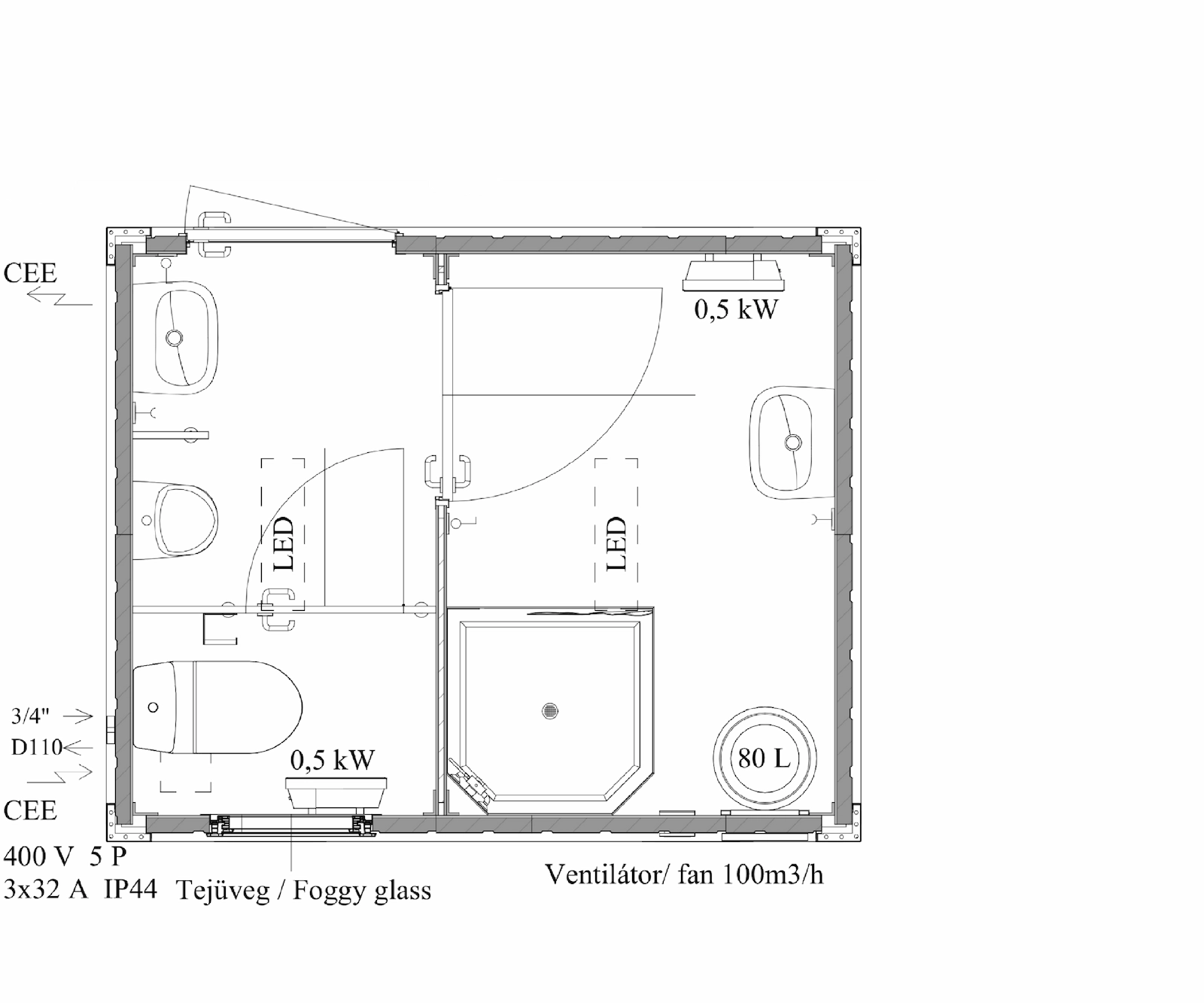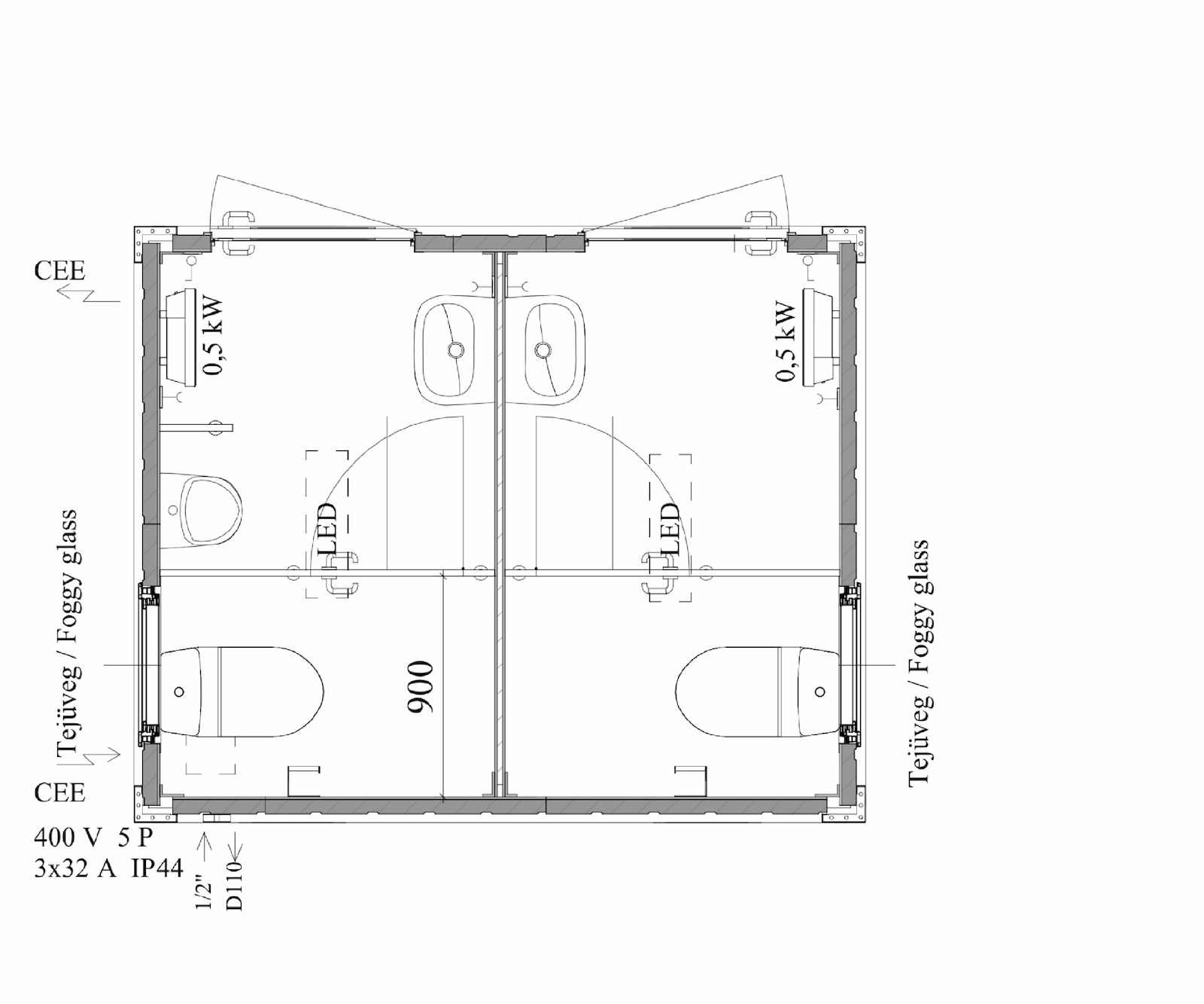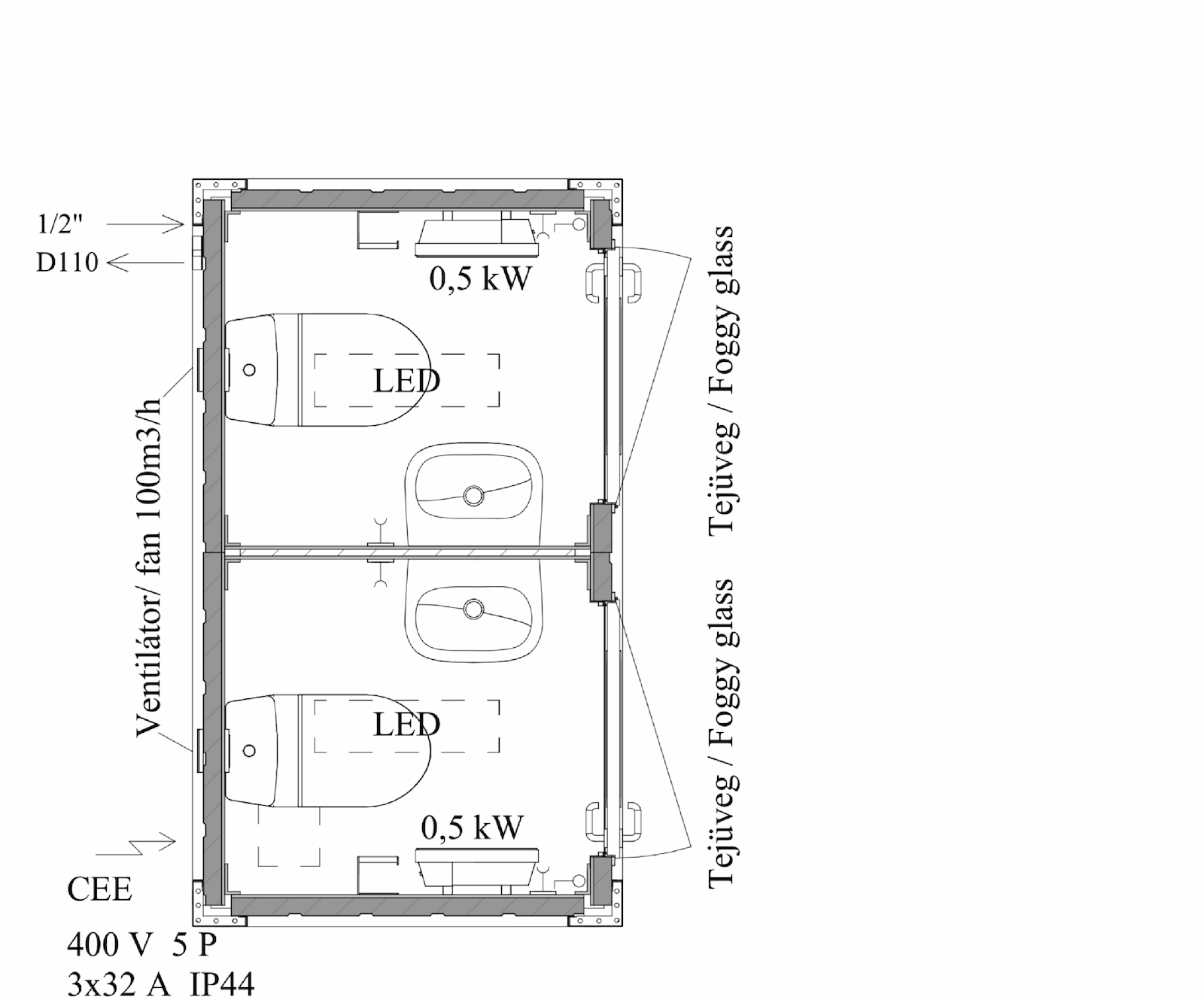 - Külön zuhany-, illetve WC-konténerek